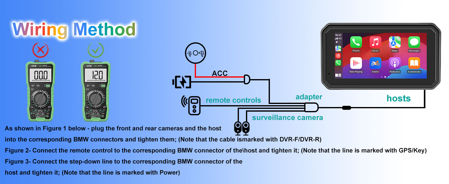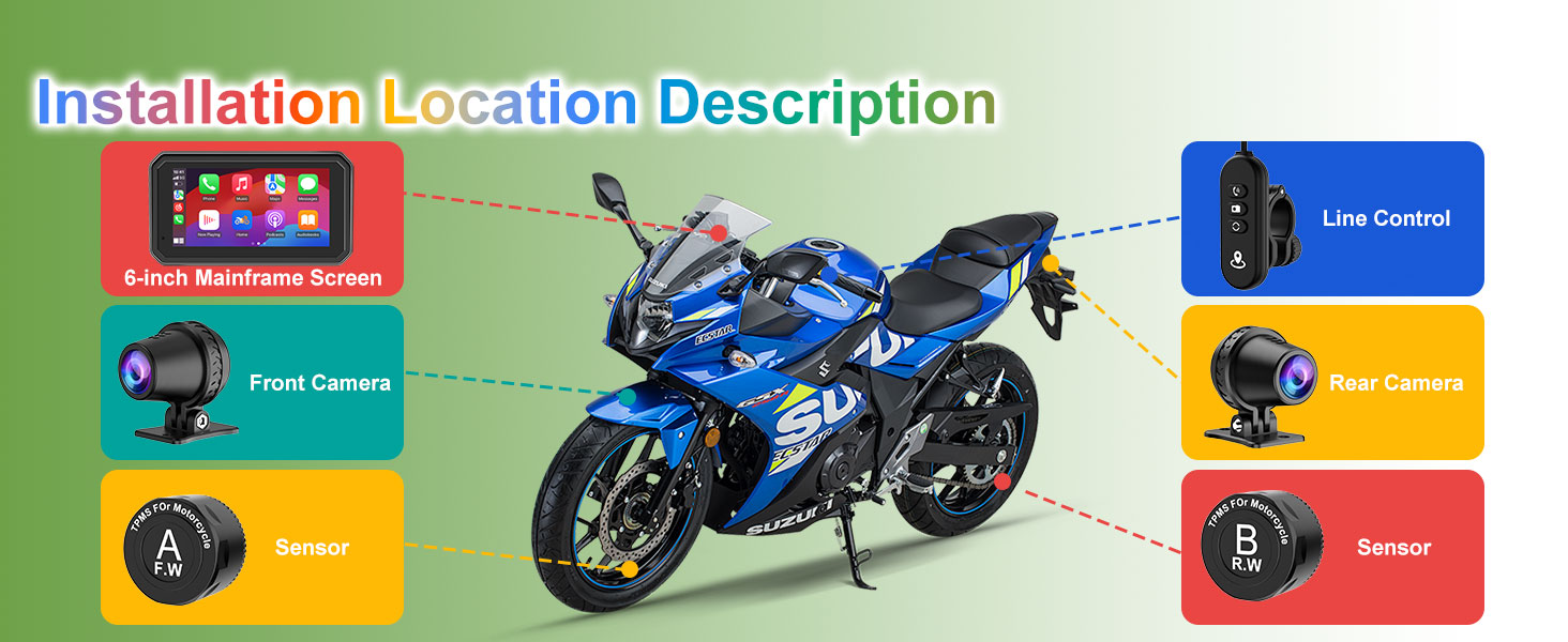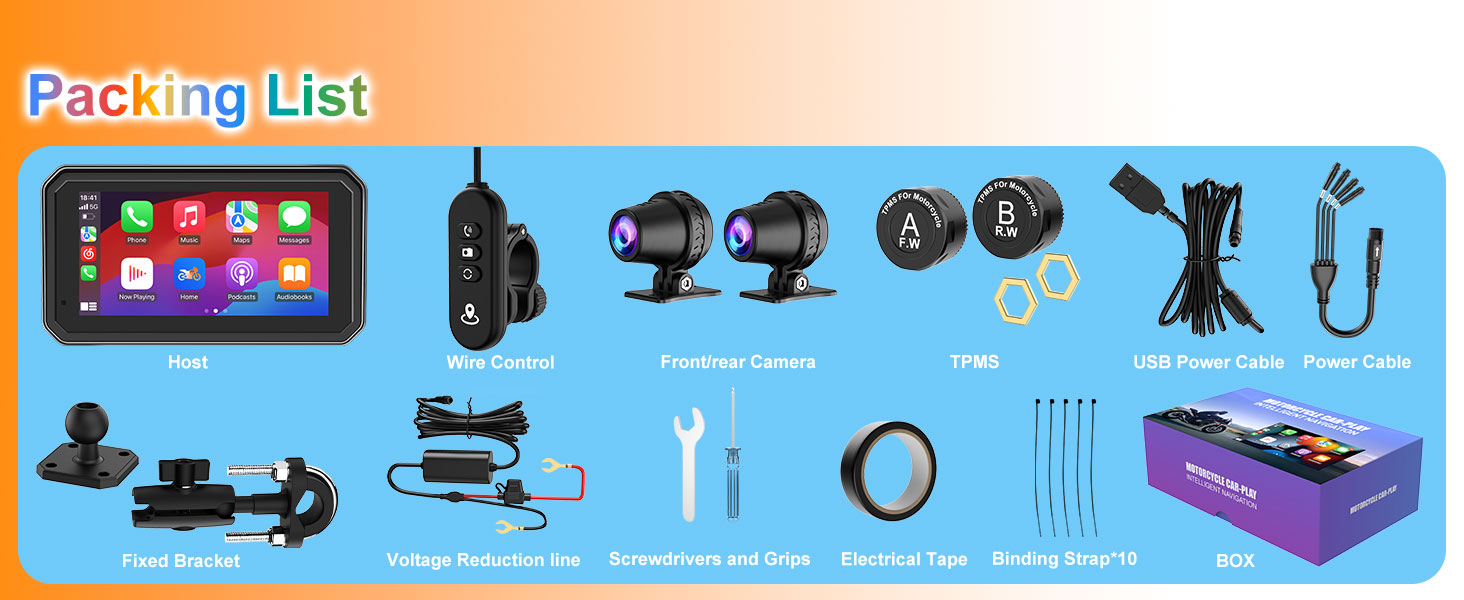 M6Pro motorcycle driving recorder, quick release bracket, motorcycle Carplay and Android Auto GPS navigation, dual high-definition 1080P cameras, tire pressure monitoring system (TPMS), 6-inch IP67 waterproof touch screen, Siri